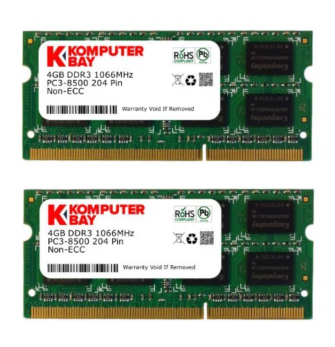 Komputerbay 8GB (2x 4GB) DDR3 SODIMM (204 pin) 1066Mhz PC3-8500 (7-7-7-20) laptop portatili di memoria per Apple Macbook Pro