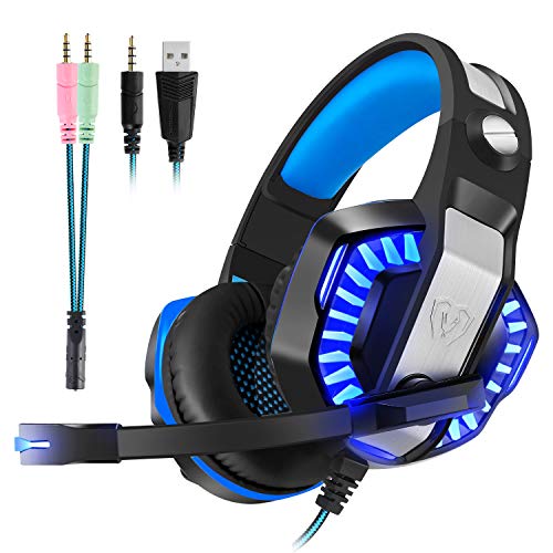 Cuffie da gioco per Xbox One, PS4, PC, cancellazione del rumore, con microfono, luce LED, controllo del volume per Nintendo Switch, PC, laptop, Mac, smartphone (mimetico)