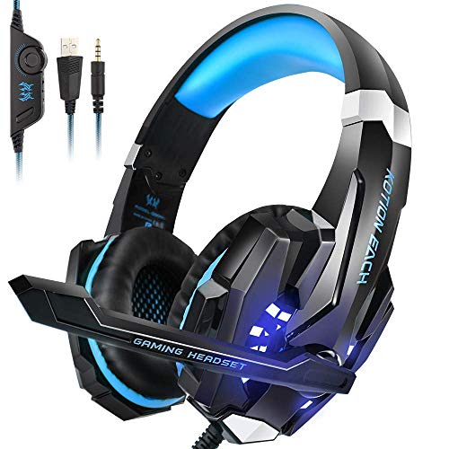 PS4 Headset, Insmart PC Gaming Headset over-ear Gaming cuffie con microfono LED cancellazione del rumore e controllo del volume per laptop Mac Nintendo interruttore Xbox One PS4 nero Black & Blue G9000